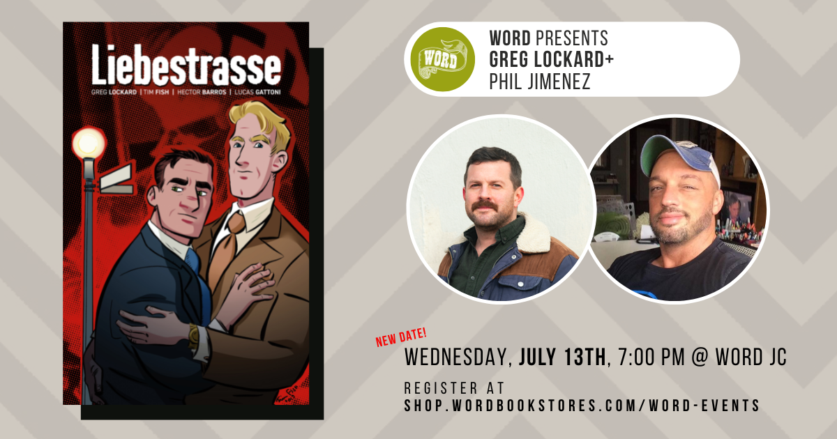 Greg Lockard, author of Liebestrasse, appears in conversation with Phil Jimenez at Word Bookstore on Wednesday, July 13, 2022 at 7PM. Tickets and details at the link.