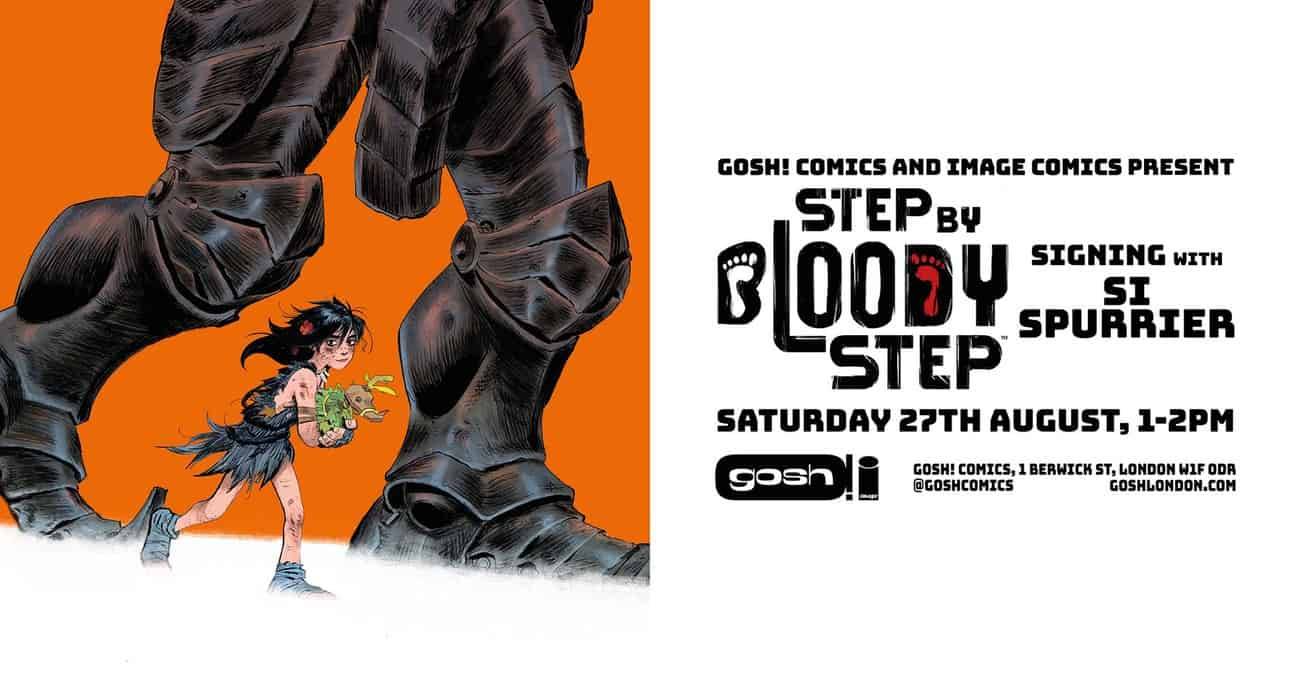 Writer Si Spurrier will sign STEP BY BLOODY STEP at Gosh Comics on Saturday 27th August, from 1-2pm.