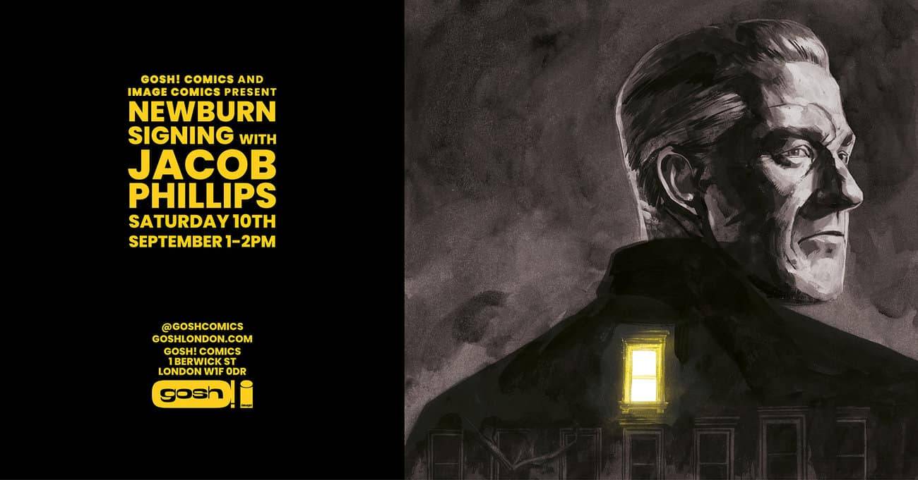 Jacob Philips appears at Gosh! Comics for a signing on Saturday 10th September, from 1-2pm! Jacob will be signing copies of the recently released collection of his new crime series with writer Chip Zdarsky, Newburn, from Image Comics.