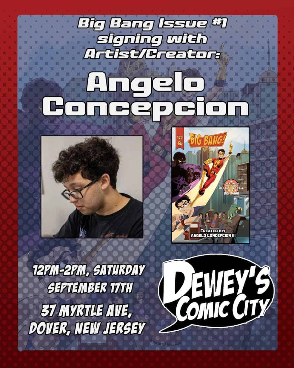 Angelo Concepcion appears at Dewey’s Comic City on Saturday, Septmber 17th from noon till 2pm to sign the first issue of BIG BANG!