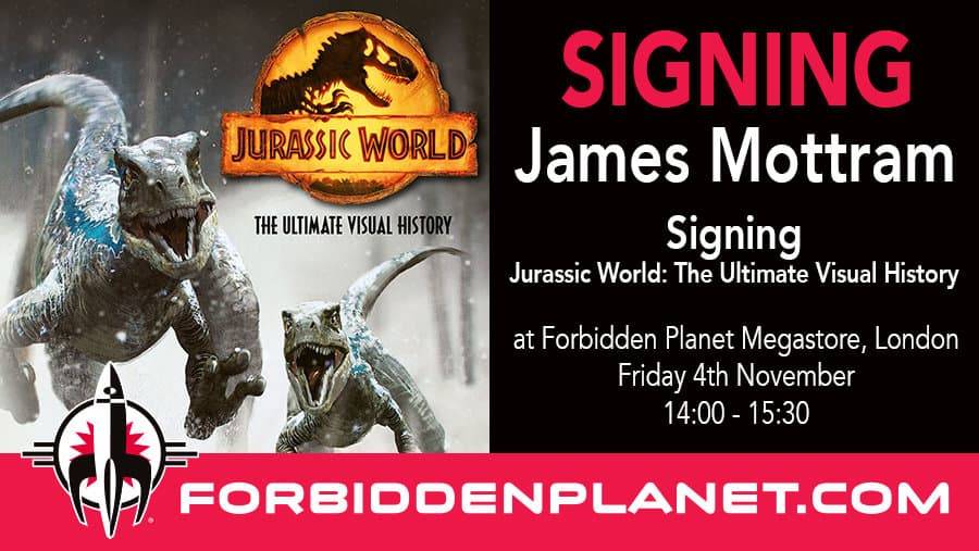 James Mottram will be signing copies of his book Jurassic World: The Ultimate Visual History at our Forbidden Planet Megastore London on Saturday 5th November 2022 from 14:00 – 15:30.