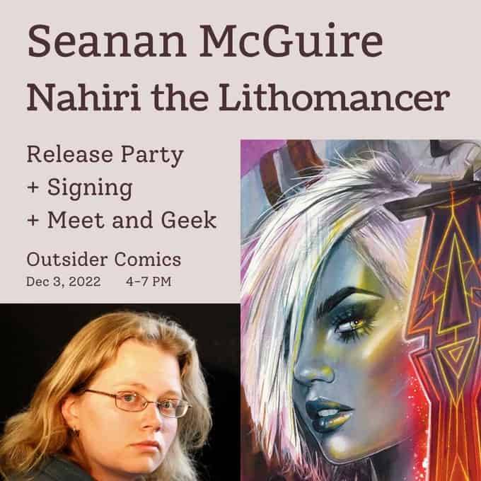 Come celebrate the release of Nahiri the Lithomancer #1 with us on Saturday, December 3rd with a release party and signing with writer Seanan McGuire! Come grab a signed copy of Nahiri or one of the many other comics Seanan has written! Learn why Tyvar is the best and Sorin is the worst!