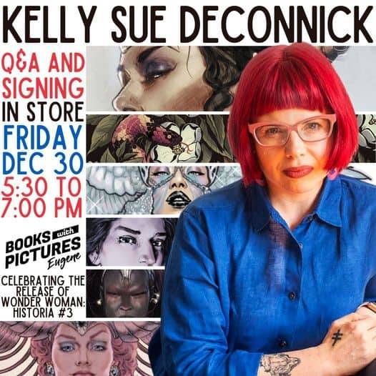 Writer Kelly Sue DeConnick (Aquaman, Captain Marvel, Bitch Planet) appears at Books with Pictures to sign Wonder Woman: Historia #3 on Friday, December 30th 5:30pm.