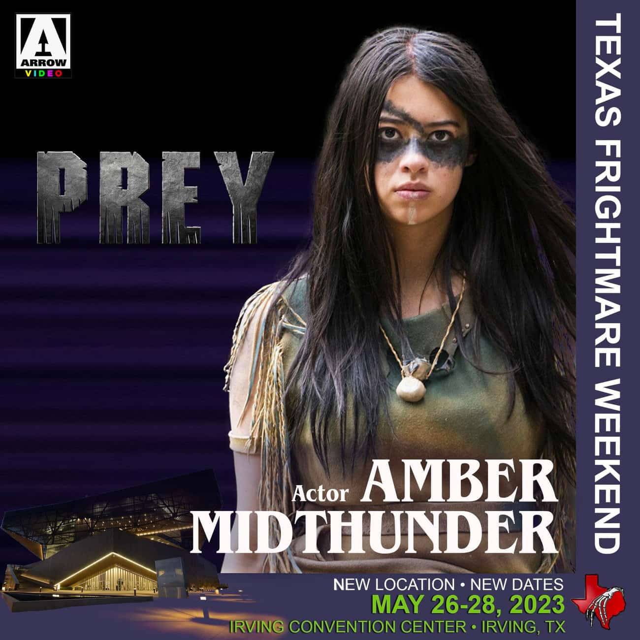 Please join us in welcoming Amber Midthunder to her first ever Texas Frightmare Weekend this May 26-28, 2023! Amber recently starred in PREY as Naru, a skilled warrior of the Comanche Nation, who fights to protect her tribe against one of the first highly-evolved Predators to land on Earth.