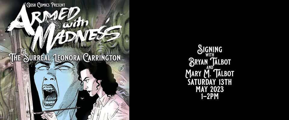 Bryan Talbot and Mary M. Talbot appear at Gosh Comics in London for a signing to celebrate the Armed With Madness launch on Saturday 13th May 2023, from 1-2pm.