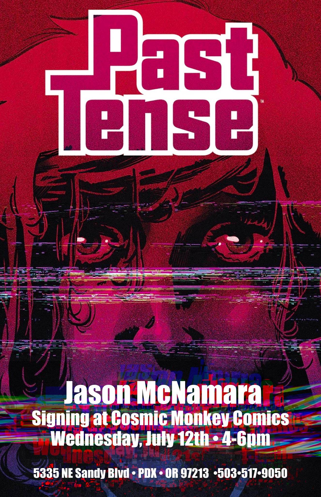 Writer Jason McNamara signs copies of his new graphic novel Past Tense on Wednesday July 12th 4-6pm at Cosmic Monkey Comics.