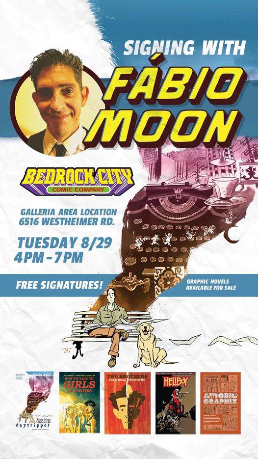 Fabio Moon appears at Bedrock City Comic Co. on Tuesday, August 29th from 4:00-7:00pm.