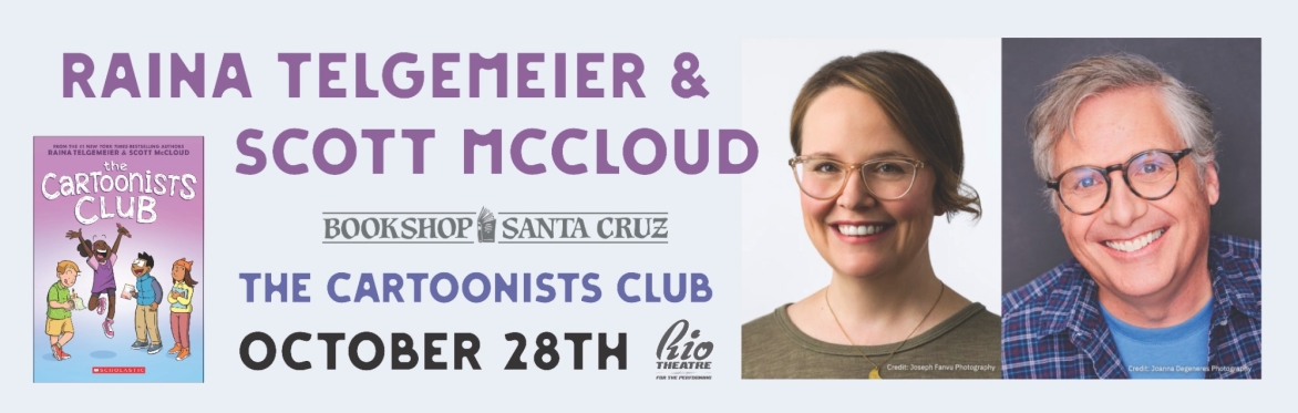 Bookshop Santa Cruz is delighted to welcome #1 New York Times bestselling cartoonists Raina Telgemeier and Scott McCloud on Tuesday, October 28, 2025 at 6:00 PM for an event at The Rio Theatre celebrating their new book The Cartoonists Club—a one-of-a-kind friendship story about creativity and self-expression that blends how-to and comics magic.